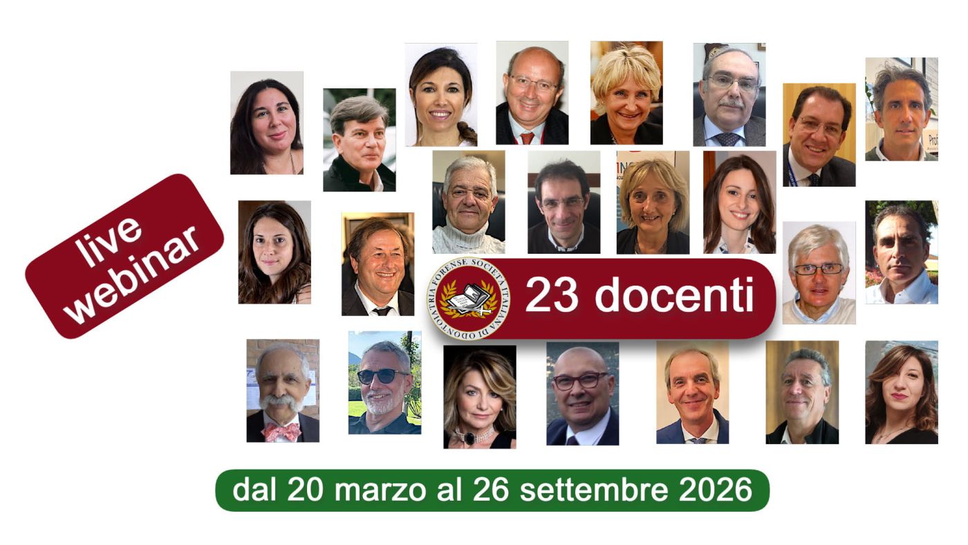 La XIII edizione del Corso di Perfezionamento in Etica e Odontoiatria Forense a cura di SIOF (Società Italiana di Odontoiatria Forense) avrà inizio il 20-21 marzo 2026 per poi proseguire con altri 5 incontri di cui l’ultimo sarà una giornata SIOF/INAIL. Come di consueto il corso si svolgerà in modalità telematica il venerdì pomeriggio e il sabato, con 50 crediti ECM.