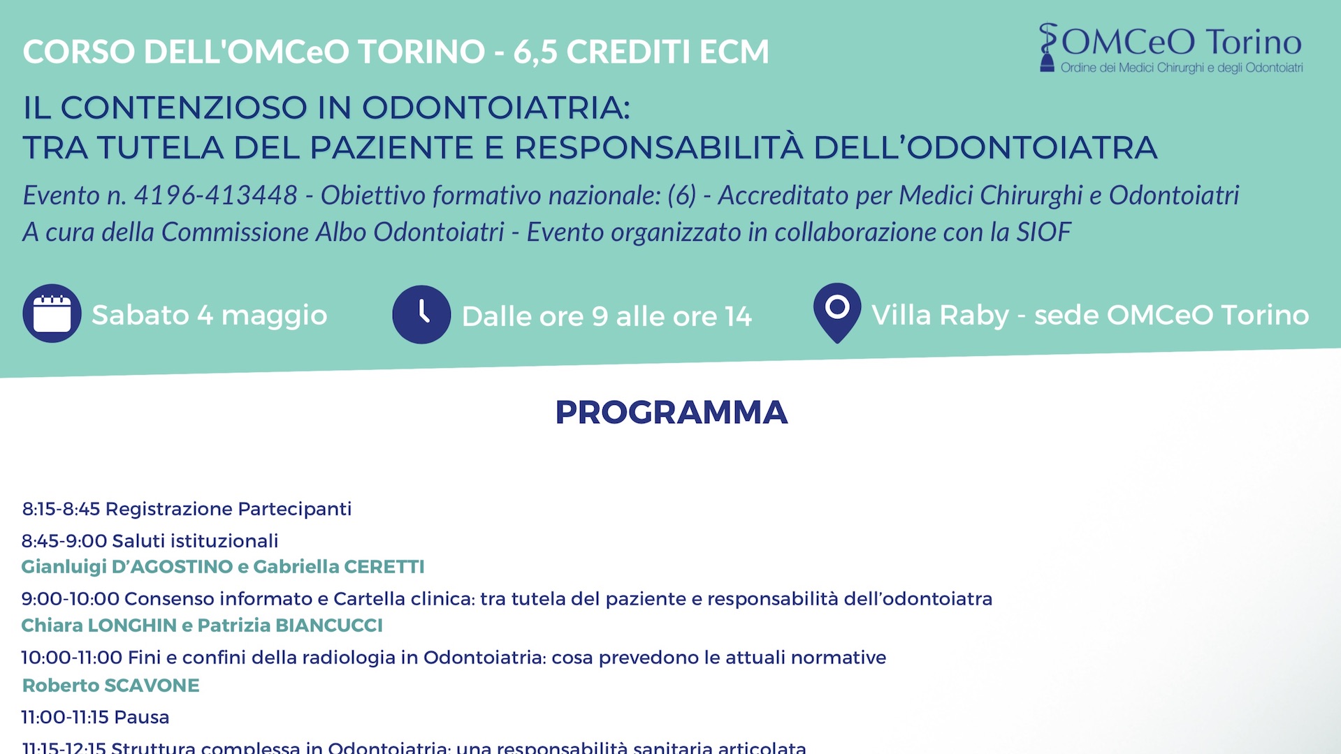 Villa Raby - sede OMCEO Torino - ospita il corso “Il contenzioso in odontoiatria: tra tutela del paziente e responsabilità dell'odontoiatra” (6,5 CREDITI ECM).